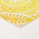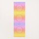 A yoga mat with a gradient of colours from violet to yellow, with a pattern of white mandalas.