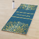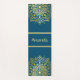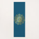 A beautiful yoga or exercise mat featuring a hand-drawn mandala design in a gold tone over a dark blue coloured background. Add your name to the centre.