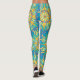Mandala Sun Goddess, Reds Yellows on Aqua Leggings