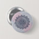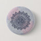 Button with dark blue, pink and grey mandala graphic illustration.