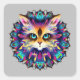 Mandala with cute furry Cat portrait Square Sticker