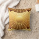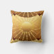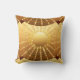 Abstract mandala pattern throw pillow in a satin gradient of overlapping discs centring around a spoked wheel of stars - shades of pale gold colour to deep bronze