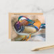 Postcard featuring a beautiful mandarin duck in profile with stunning colourful feathers. Photo taken in Arcadia, California.