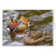 Card with photo of pair of mandarin ducks (Aix galericulata), swimming on water.