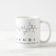 Mandi spelled out in amino acids as M A N D I (Methionine Alanine Asparagine Aspartic acid Isoleucine) on a mug for the scientist in you.