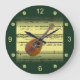 Mandolin~Rolled Sheet Music~Gold/Green Background~ Large Clock