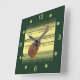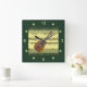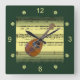 Mandolin~Rolled Sheet Music~Gold/Green Background~ Square Wall Clock