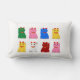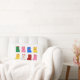 Rectangular cushion with neko maneki of different colors on white background and the inscription Lucky cat on the back