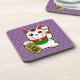 The Maneki Neko, or Beckoning Cat, will bring you luck! The purple background colour can be changed in the full editor. Protect your desk or table from water rings with this Japanese lucky cat coaster set!
