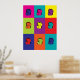 Pictures of maneki neko cat, also known as Fortune cat, done in a rainbow of colours in a pop art style on a poster!