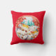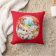 Throw pillow with cute Japanese lucky cats partying under the cherry blossoms in spring, with Mount Fuji and a Daruma doll in the background too.