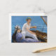 Manet Boating postcard. Oil on canvas from 1874. Manet painted several different boat paintings during his career, Boating is perhaps the most personal and vibrant. Boating depicts a young couple in a sale boat. The young man with his hand on the rudder wears a simple white shirt, straw hat, and moustache, while the young woman leans down in the boat in a fancy blue and white dress with an elegant feathered hat. The water through which they sail is blue and calm. A beautiful gift for fans of Manet, sailing, early impressionism, and famous boat paintings.