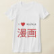 This "I love manga" or "I Heart manga" design has a black font and a red heart. It also shows the word "manga" in Japanese Kanji red font.