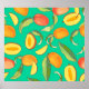 Mango.Seamless pattern with yellow and red tropical fruits and pieces on green background.Bright summer Vintage illustration.