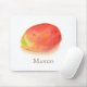 Lovely watercolor illustration of a ripe mango, with text. A delicious image for your desk!