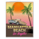 Manhattan beach Los Angeles retro or vintage style travel poster of a old american vintage car riding on a road by palms in a hot evening sunset.