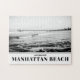 This black and white puzzle features a stunning view of the Manhattan Beach Pier, captured from the ocean. The vintage-style photograph shows the pier extending into the sea, with the beach and surrounding coastline visible in the background. It's the perfect souvenir or gift for beach lovers, fans of mid-century modern photography, or anyone who loves the California coast.