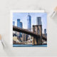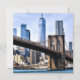 Manhattan, cityscape photograph with skyscrapers and Brooklyn bridge.