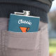 The flask itself is fine. It’s a cheap flask, obviously bought in bulk, however am prepared to overlook that. Given that it is a personalized item, I would have liked to have seen gift boxing instead of the generic packaging. Terrible printing, and/or quality. It’s a cheap, tacky vinyl. It is not cut straight and is also applied in a way that it is overhanging the bottom, causing the glue to catch on items and it will eventually roll and tear, damaging the wrap.