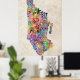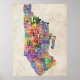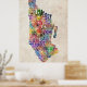 A typographic text map of the Manhattan area of New York City. The Manhattan map is made from the names of districts and neighborhoods of Manhattan, New York City.