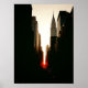 The view is of the sun setting perfectly aligned with the Manhattan east-west grid looking down 42nd Street in midtown. The Chrysler Building sits alongside this dramatic sunset event. This is an occurrence that happens twice a year and it's a stunning sight to behold.