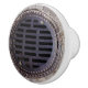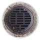 Features an antique manhole cover grate nestled in an old cobblestone road. Rustic and refined with old world charm.