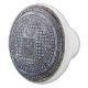 Features an antique manhole cover grate embellished with a crown and a phoenix, nestled in an old cobblestone road. Rustic and refined with old world charm.