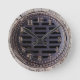 Features an antique manhole cover grate nestled in an old cobblestone road. Rustic and refined with old world charm.