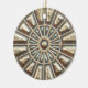 Rusty industrial metal reflects in this manhole cover inspired three dimensional geometric pattern in rich shades of gold, sliver and stainless steel. Available on a wide range of gift and stationery products.