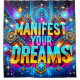 This shower curtain says "Manifest Your Dreams" on it.