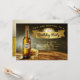 Beer birthday party invitations with a gold banner on a beer bottle background. You can add text and age to the beer bottle label to personalise this fun and classy beer party invitation.