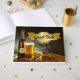 Beer birthday party guest book with beer bottle, beer glass and peanuts on a rustic table background. This beer birthday party guest book is easily customised for your event by adding text to the beer bottle label and spine. This fun beer guest book works well for a man's birthday party, retirement party, bachelor party, etc.