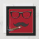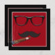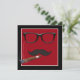 Fun red and black photo booth prop man's moustache birthday party invitation. This red and black cigar and moustache birthday party invitation is easily customised for your event by adding your event details, font style, font size & colour, and wording.