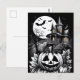 Unearth the essence of Halloween with this captivating postcard! A haunting mansion stands adorned by the eerie glow of a bright moon. Bats take flight across the night sky, while a carved pumpkin adds a touch of ghoulish charm. Share the thrill of the spooky season with this enchanting postcard.