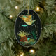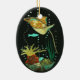 Oval ceramic ornament with an image, on both sides, of a whimsical manta ray, an aqua fish, and coral on black. See the entire Under the Sea Ornament collection in the PARTY FAVORS section.