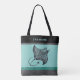 Manta Ray on Teal Faux Brushed Metal Monogrammed Tote Bag