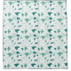 Blue and white shower curtain featuring a pattern of manta rays and stingrays swimming about a reef.