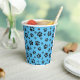 Many Black Paw Prints Design Paper Cup with customisable background colour..