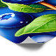 Many blueberry fruit painting. In the central vertical axis, located near and most in the centre of the image with sky background art painting, psychedelic art stained glass whimsical luminescence 3D.