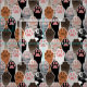 An illustrated pattern of many cat paws with little bean toes! Each paw is coloured in a different cat fur type - tuxedo cat, white cat, black cats, orange cats, tabby cats & siamese cats.
