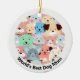 Many Colourful Dogs Design Ceramic Ornament with customisable text in white ring on both sides.