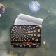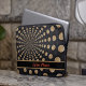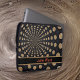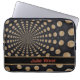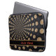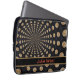 This laptop sleeve features an abstract swirled moon design, with a customizable band for our name or initials. This lunar design includes a band in black with a contrasting border, and your name or initials in red.