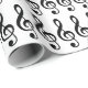 This wrapping paper design features many black treble clef musical symbols. It would be a fun wrap to use for gifts for a musician, singer, or composer.