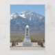 This photo features the memorial monument at the former Manzanar internment camp in California. The Sierra Nevada mountains are seen in the background. A very peaceful and majestic scene.