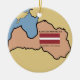 The map and flag of Latvia with Latvia printed in both English and Latvian.