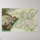 Illustrated vintage map showing Napoleon Bonaparte riding a chariot across the sea. Map commemorates the Napoleonic campaign to invade England. © Bridgeman Images