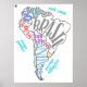 Colourful, original map of South America with focus on Spanish-speaking countries. Great for Spanish teachers!