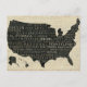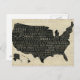 © Pela Studio / Wild Apple. A black and tan map of the USA. The continent is coloured black with the names of the states written across it.