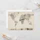 A map of the world made from a collage of old postcards, in different languages and with stamps from a variety of countries, on an antique style background.
