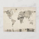 A map of the world made from a collage of old postcards, in different languages and with stamps from a variety of countries, on an antique style background.